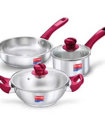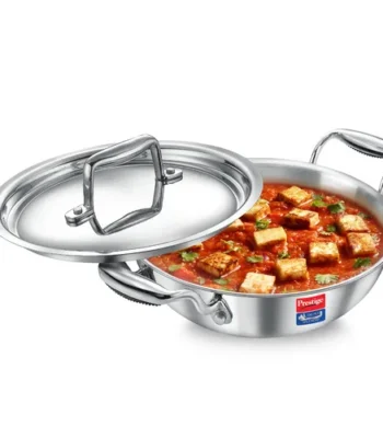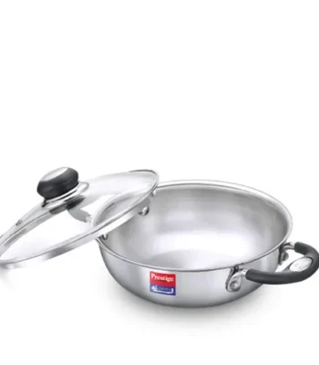 Prestige Tri Ply Splendor Stainless Steel Gas and Induction Compatible Kadai with Glass Lid (Silver)