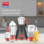 Be the first to review “Prestige 750 Watts Nakshatra Super Mixer Grinder with 4 Jars (3 Stainless Steel Jars + 1 Juicer Jar)| Sturdy Handles| Juicer Jar with Sieve|Red and Black” Cancel reply