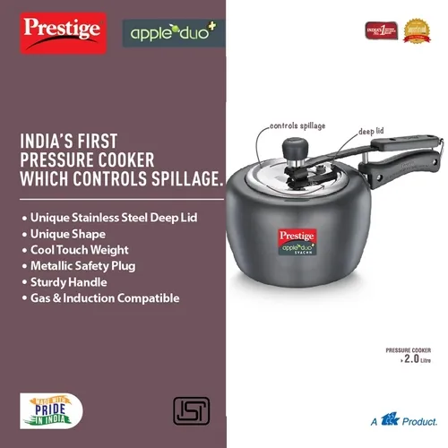 Prestige Apple Duo Plus Hard Anodised Spillage Control Pressure Cooker (Black)