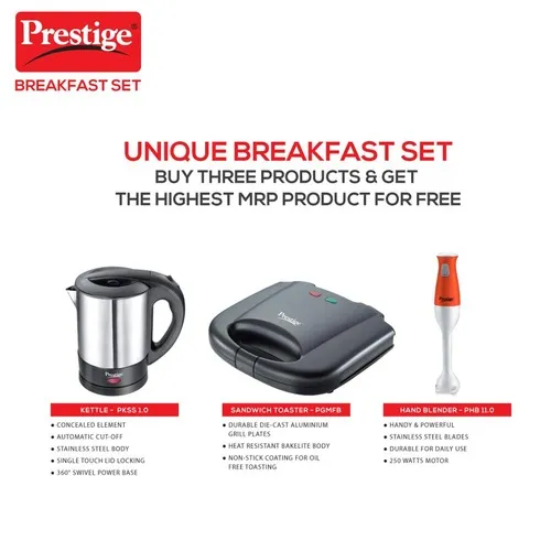 Prestige Breakfast set – Electric Kettle, Sandwich Toaster & Hand Blender