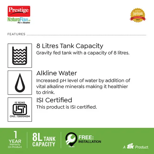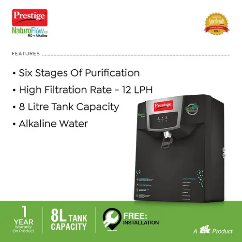 Prestige CleanHome Naturoflow 1.0 RO+ Alkaline Water Purifier, 8L (Black)