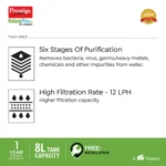 Advanced water purifier using the proprietary Enrich+ Technology to not just give clean & pristine water but also pack it with minerals. The technology increases the pH level of water by addition of vital alkaline minerals, providing anti-oxidant water thereby hydrating the body better than normal water. It also boosts immunity level, improves digestiqy, has detoxifying properties & fulfills essential mineral needs. 6 Stages of Purification:- External Pre-Filter, Sediment Filter, Pre-Carbon Filter, Post-Carbon Filter, RO Membrane, Alkaline Cartridge
