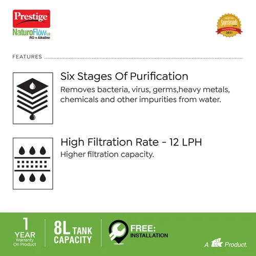 Be the first to review “Prestige CleanHome Naturoflow 1.0 RO+ Alkaline Water Purifier, 8L (Black)”