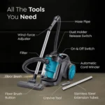 Clean your home to perfection with the new compact and lightweight Typhoon 11 Bagless Vacuum Cleaner from Prestige Clean Home. This powerful vacuum cleaner comes with a 1600W motor which helps in keeping your home clean and spotless. It’s bagless dust compartment eliminates the need for repeated changing of bags, thereby reducing maintenance costs. Besides being portable, the sturdy buttons and the 5m long wire lets you clean even the far-off corners easily. This vacuum cleaner is also equipped with an automatic cord winder that recoils the long wire once the cleaning is over.