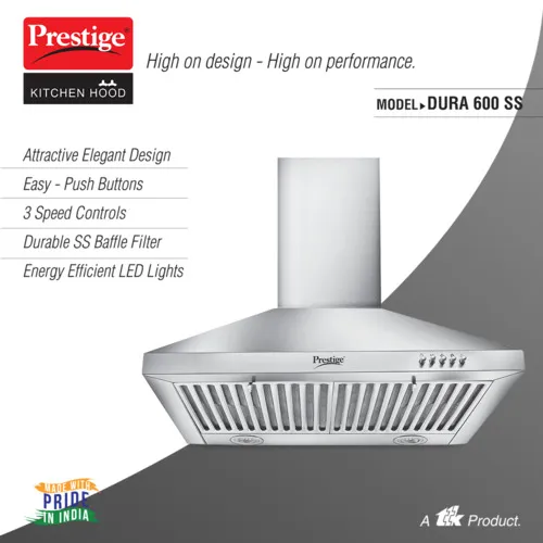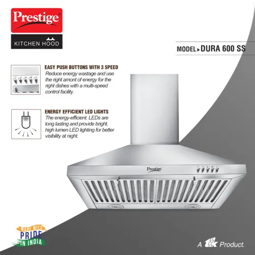 Prestige Kitchen Hoods are engineered to suit your needs by offering a modern solution to your kitchen. Made from high-quality stainless steel, the classic pyramid design of this kitchen hood adds sophistication and performance to your home. Easy-to-use 3-speed controls, LED lights and easy to clean SS baffle filters, this kitchen hood is guaranteed to make a statement in any kitchen!