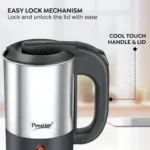 Prepare hot water, instant tea etc, in a matter of minutes with Prestige Electric Kettle. With smart features like automatic cut-off, single touch lid locking, beautifully designed ergonomical handle, elegant body etc., this glamorously designed electric kettle is a must have accessory for your modern kitchen.
