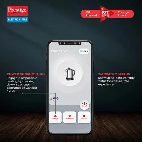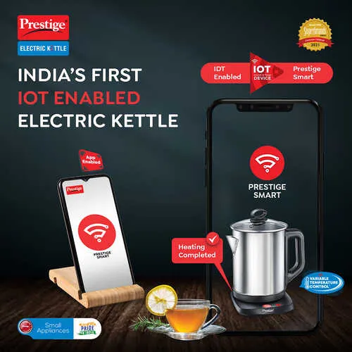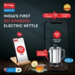 Prepare hot water and instant tea in a matter of just one click. Introducing India’s first loT enabled Prestige smart electric kettle. With the Prestige SmartChef App, you can set the desired temperature of the water. (Temperature can be controlled through app only) This elegantly designed electric kettle with its super smart features & durable SS body is a must have appliance for your modern-day kitchen. Technology has never been this simple!