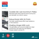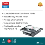 The all-new Prestige Electric Grill lets you prepare great tasting food without using oil. Now all it takes to cook juicy steaks, sandwiches, mouth watering sizzlers or even throw a barbeque party is to simply be in the mood.