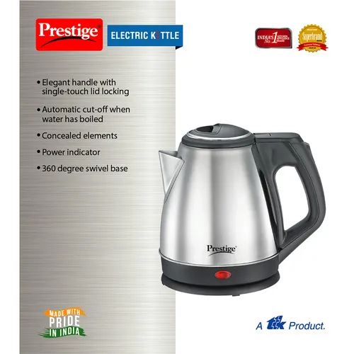 Prepare hot water, instant tea etc, in a matter of minutes with Prestige Electric Kettle. With smart features like automatic cut-off, single touch lid locking, beautifully designed ergonomic handle, elegant body and much more, this glamorously designed electric kettle is a must have accessory for the modern kitchen.