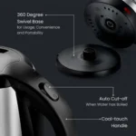Prepare hot water, instant tea etc, in a matter of minutes with Prestige Electric Kettle. With smart features like automatic cut-off, single touch lid locking, beautifully designed ergonomic handle, elegant body and much more, this glamorously designed electric kettle is a must have accessory for the modern kitchen.
