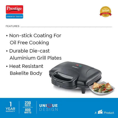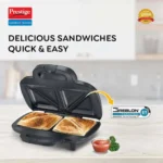 Prepare healthy and tasty sandwiches in the convenience of your kitchen. The non-stick coated plates need less oil while toasting making the sandwich healthy. Choose a range of Prestige Sandwich Maker to add a touch of class and convenience to your kitchen.