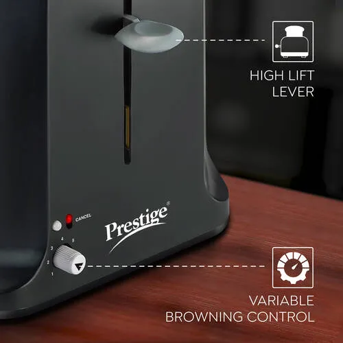 Prestige Slice Pop-up Toaster 750W | Elegant Stainless Steel Finish | Cancel Function & High Lift Lever | Black & Silver