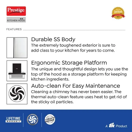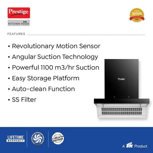 Prestige Tampa 600 KitchenHood with Auto Clean Function – Angular Suction – 1100m3/hr